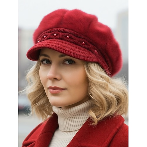 berretto da donna in pelliccia sintetica di poliestere, decorato con perle, disponibile in più colori, perfetto per la moda invernale