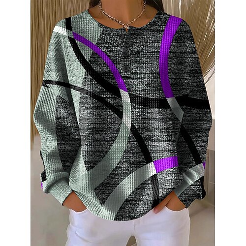 Per donna Felpe con cappuccio Grafico Geometrico Blocco di colori Moda Casual Stampa Manica Lunga Girocollo Top Regolari Casuale Streetwear Bottoni Blu Rosso Viola Verde Autunno Inverno