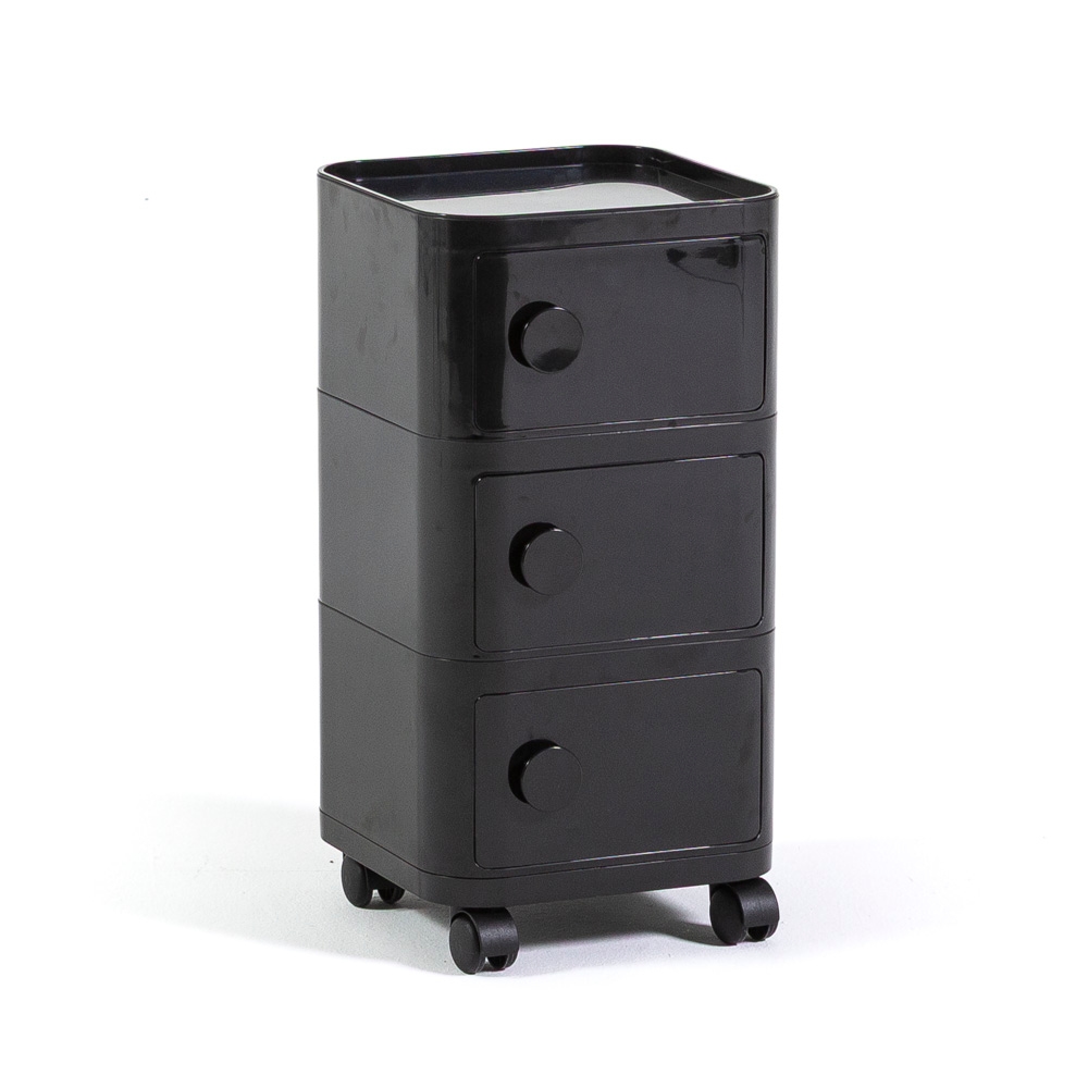RATTATAN Aufbewahrungsmöbel mit 3 Fächern und Rollen aus ABS, modernes Möbel mit Magnettüren für Wohnzimmer, Schlafzimmer und Büro – EDEN – Schwarz