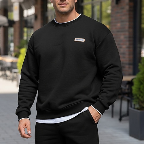 Per uomo Maglia Felpa in pile Blu Nero Bianco Girocollo Semplice Patchwork Sport Outdoor Quotidiano Ferie Poliestere Streetwear Essenziale Casual Autunno Inverno Abbigliamento Felpe con cappuccio
