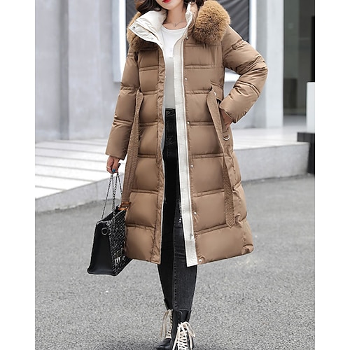 Per donna Cappotto Invernale Giacca Piumino Giacca con Cappuccio Caldo Confortevole Cerniera Tasca Casual Blocco di colori All'aperto Vacanza Casuale Ferie Lungo Con Cappuccio Vestibilità regolare