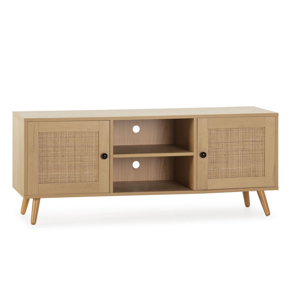 Mobile TV con 3 ante effetto rattan, larghezza 160 cm, crema