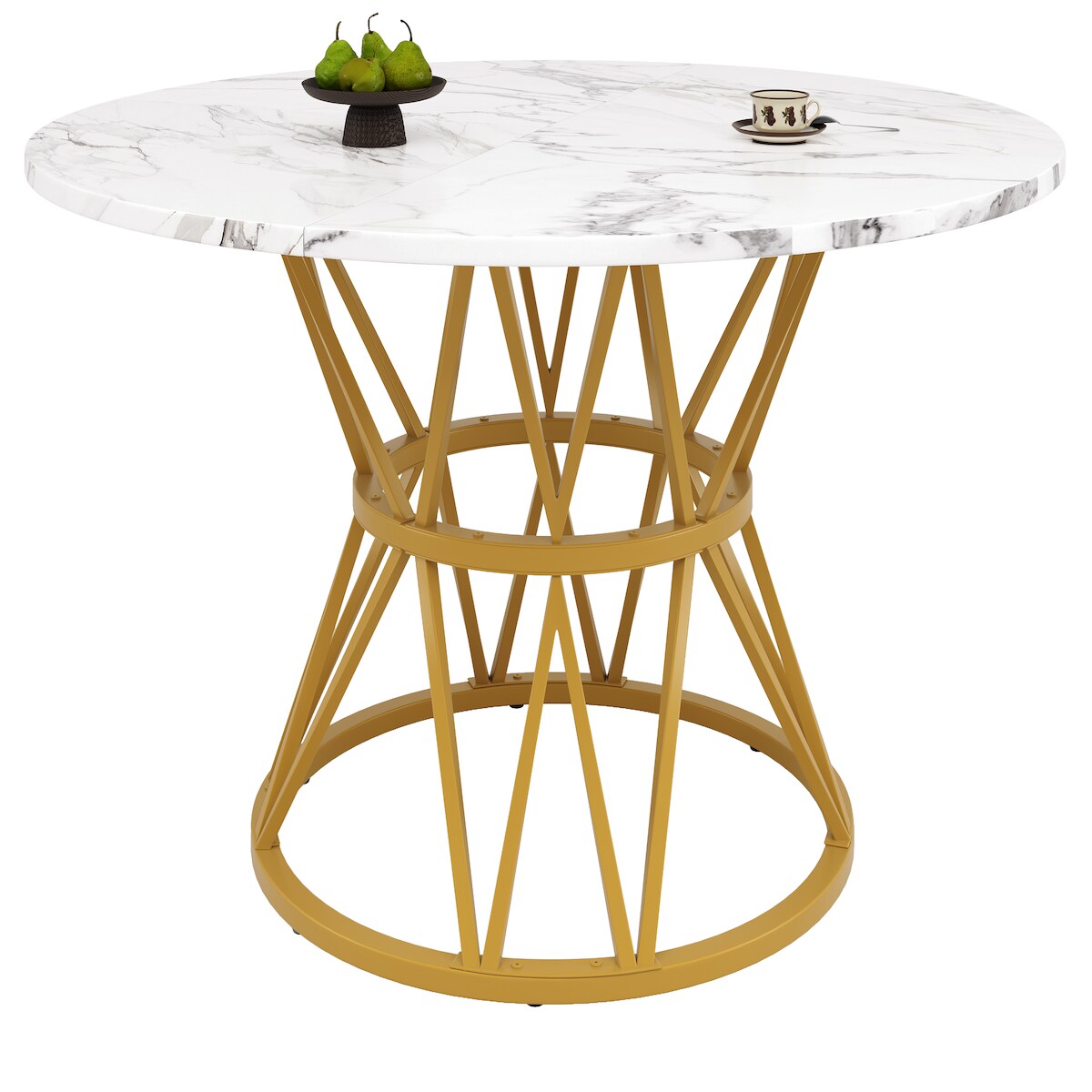 OKWISH Esstisch rund Weiß+Gold 80x80x75 cm mit MDF Tischplatte in Marmoroptik, Metallbeine, pflegeleicht und vielseitig für Esszimmer und Küche