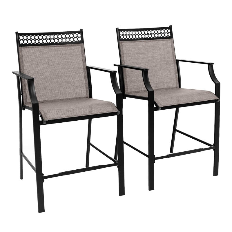 COSTWAY Set mit 2 Gartenstühlen, hohen Terrassenstühlen, Balkonstühlen mit schnell trocknendem Stoff, 66 x 62 x 114 cm (braun)