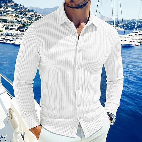 Per uomo Camicia elegante Camicia non stiro Camicia con Colletto Camicia con Bottoni A righe Matrimonio Lavoro A D G H Manica Lunga Colletto Primavera Autunno Abbigliamento Bottonato