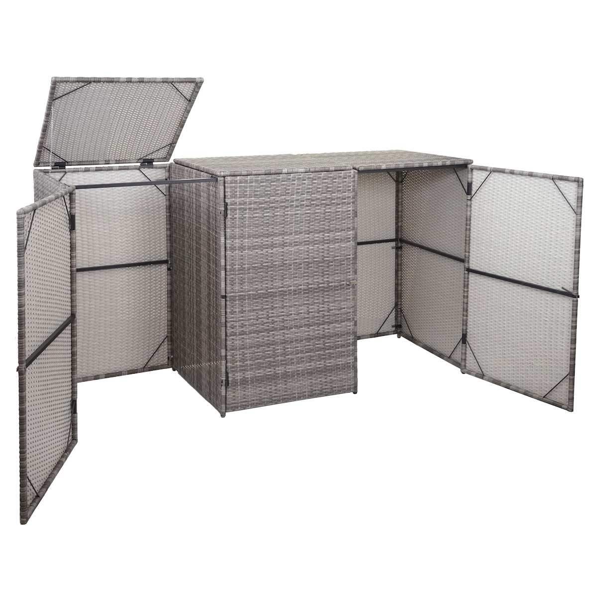Mendler 3er-Mülltonnenverkleidung HWC-E25, Mülltonnenbox Mülltonnenabdeckung, Poly-Rattan 3x120l ~ grau