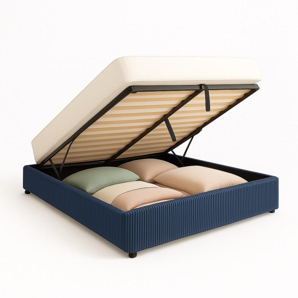 Lit coffre velours côtelé bleu nuit 90x190 cm