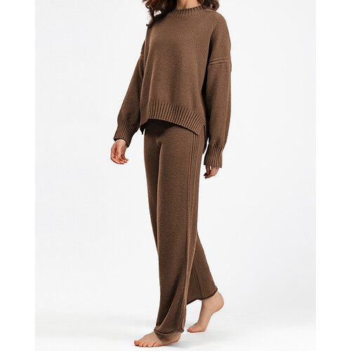 Per donna Set Pigiama Casual Comfort Colore Puro Elastico in vita Pantalone Casa Quotidiano Manica Lunga Girocollo Rosa Blu Primavera Autunno Inverno Vestibilità regolare