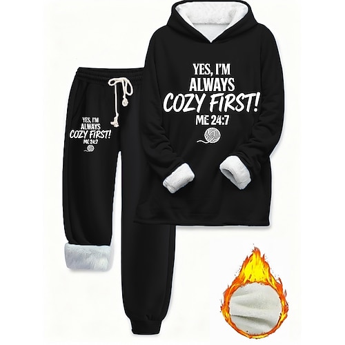 Per donna Quotidiano Elegante Set da due pezzi Tuta Set di Pantaloni Manica Lunga Con Cappuccio Grafico Lettera Coulisse Stampato Casuale Quotidiano Nero Rosa scuro Blu Autunno Vestibilità comoda
