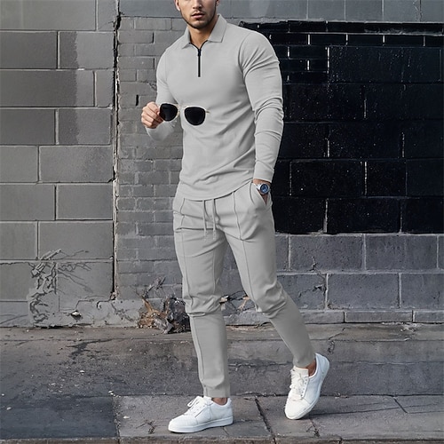 Per uomo Geometria Polo Maglia da golf Completo da polo Manica Corta Camicia Collo ripiegato Streetwear Casuale Nero Giallo Blu Azzurro Cerniera 2 Pezzi Abbigliamento Moda Designer Casual Traspirante