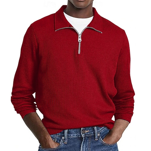 Per uomo Polo Sportivo Polo con zip a un quarto Strada Da mare Chiusura lampo quarto Manica lunga Di tendenza Essenziale Tinta unica Tasche Primavera Autunno Standard Borgogna Verde Grigio scuro