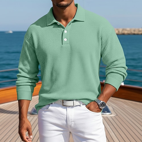 Per uomo Magliette Polo a Nido d'Ape Testurizzato Casuale Affari Colletto Polo a Coste Manica Lunga Moda Tinta unica Bottoni Puro Autunno Primavera Autunno Primavera Estate Vestibilità regolare