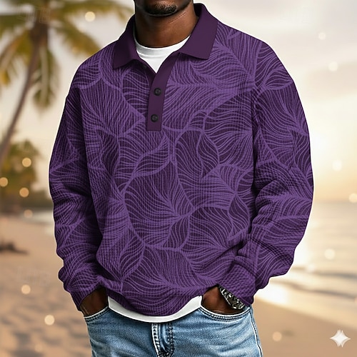 Per uomo Foglia Piante Magliette Polo a Nido d'Ape Manica Lunga Magliette polo Bavero Casual Resort Athleisure Camicia hawaiana Abbigliamento quotidiano Stampa 3D Primavera Autunno Inverno Blu Viola