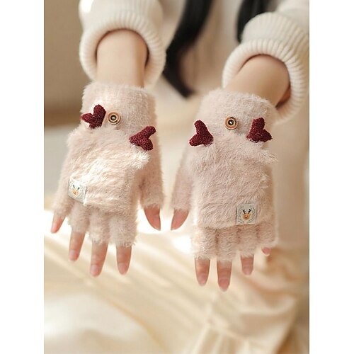 Guanti di peluche da donna, regalo di Natale, multicolore, in morbido materiale peloso con design a corna di renna, ideali per gli spostamenti quotidiani e le festività natalizie