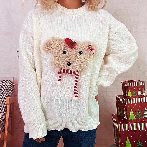 Per donna Felpa Maglione Pom Pom regalo di Natale Streetwear Grafico Albero di Natale Fiocchi di neve Girocollo Lavorato a maglia Stampato Manica Lunga Top Regolari Maglia Natale Quotidiano Ferie