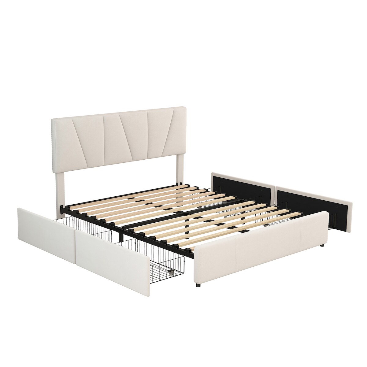 MODFU Doppelbett 140x200 Polsterbett 4 Schubladen Stauraum höhenverstellbares Kopfteil Plattformbett Lattenrost inklusive Beige