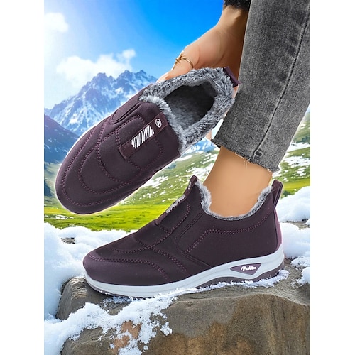 scarpe invernali slip-on da donna color bordeaux con finiture in pelliccia sintetica, stivaletti comodi per il freddo, perfetti per Natale, shopping natalizio e giornate informali