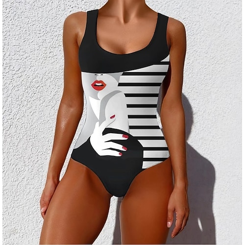 Costume da bagno tankini 2 pezzi da donna arricciato slip controllo della pancia alta vita slim senza schiena vacanza mare abbigliamento a righe collo all'americana senza maniche