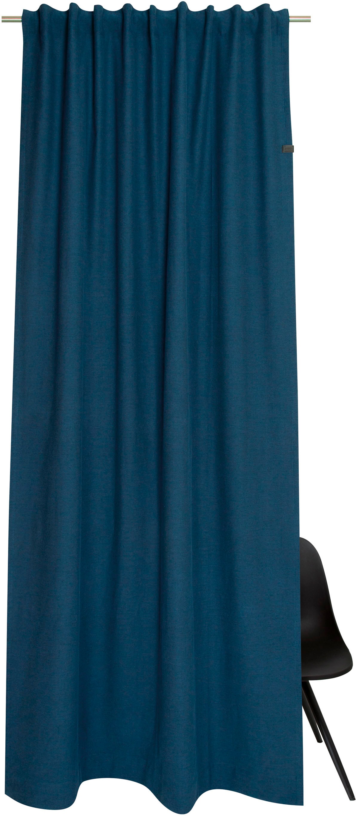 Vorhang "Solo" Gr. 1, blau, B:130cm H:250cm, Jacquard, Baumwolle, Polyester, SCHÖNER WOHNEN-KOLLEKTION, Gardinen, mit Lederapplikation