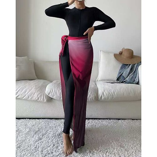 Per donna Top sottomuta Costume da bagno con stampa floreale Costume da bagno Color-blocking Protezione UV Manica Lunga Costume da Bagno Surf Snorkeling Nuoto Estate