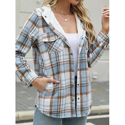Per donna Giacca Sherpa Confortevole Traspirante Tasca Bottoni Casual Semplice Vacanza Streetwear Casuale Abbigliamento quotidiano Monopetto Regolare Con Cappuccio Vestibilità regolare Manica Lunga