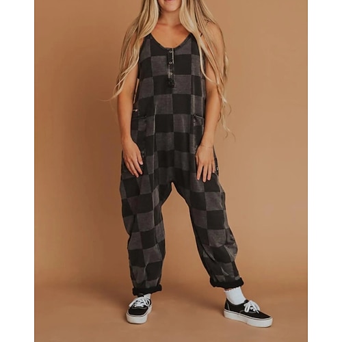 Per donna Normale Tuta Streetwear Tinta a nodi Senza Maniche Scollo a V Tasca Vacanza Streetwear Vestibilità comoda Nero Blu Viola Autunno