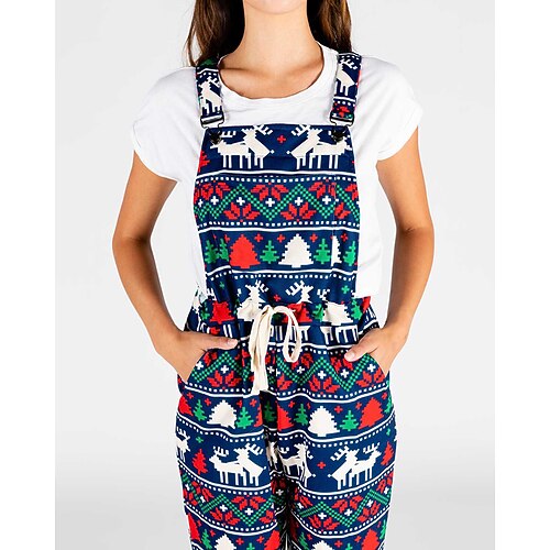 Per donna Normale Tuta Attivo Grafico Senza Maniche Collo quadrato Tasca Stampato Natale Vacanza Vestibilità regolare Blu Bianco Verde chiaro Autunno