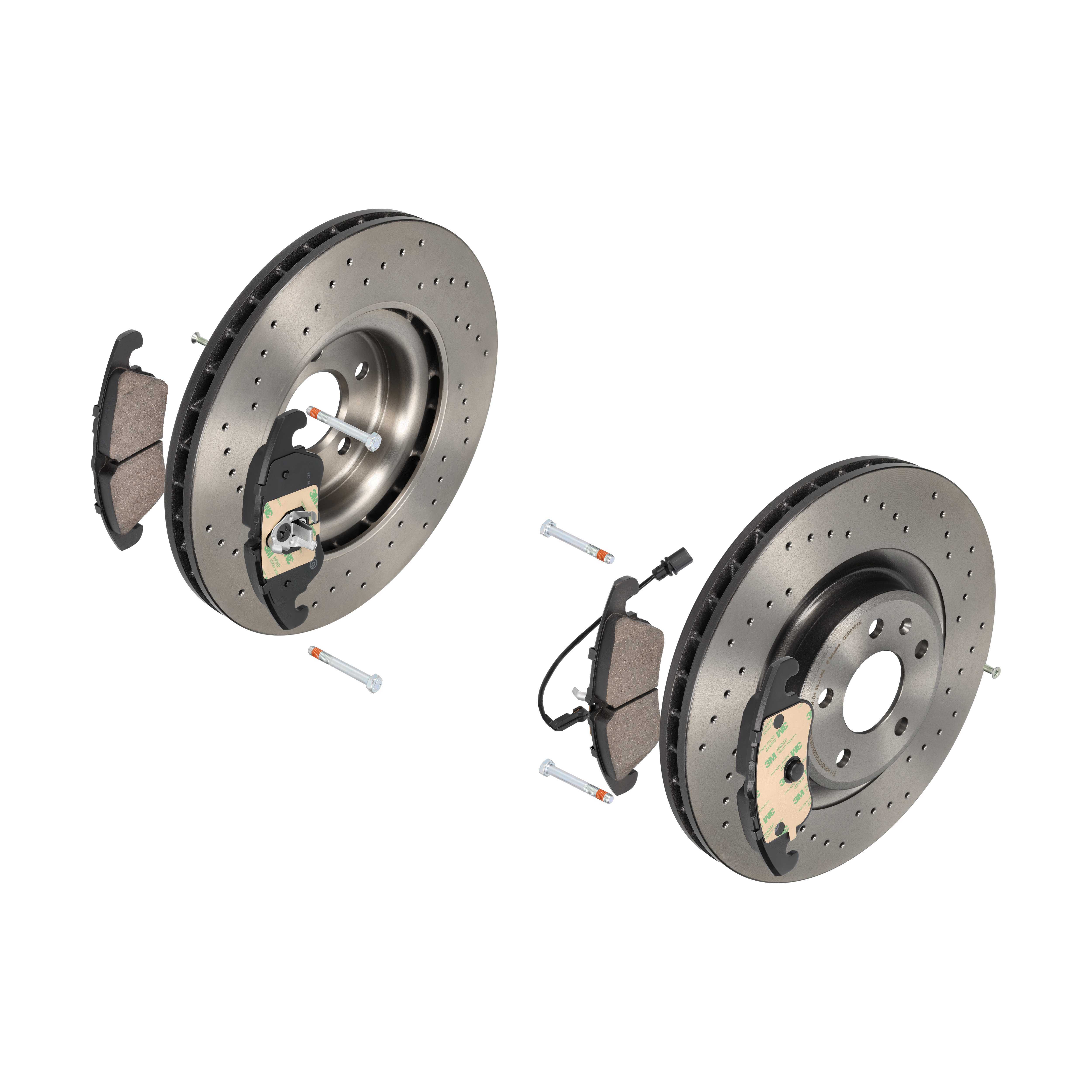 BREMBO Bremsensatz-Vorderachse XTRA LINE / STANDARD SK8K0F2985 Bremsensatz, Scheibenbremse vorne rechts links Gelocht/innenbel. 345mm für SKODA VW SEA