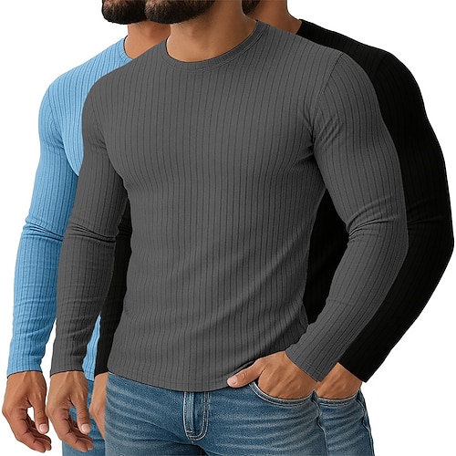 Per uomo Maglietta Canotta Muscolare Maglietta a Maglia a Coste Camicia a Maniche Lunghe Manica Lunga Girocollo Primavera Autunno Tutte le stagioni Semplice Testurizzato Striscia di Fossa Moda