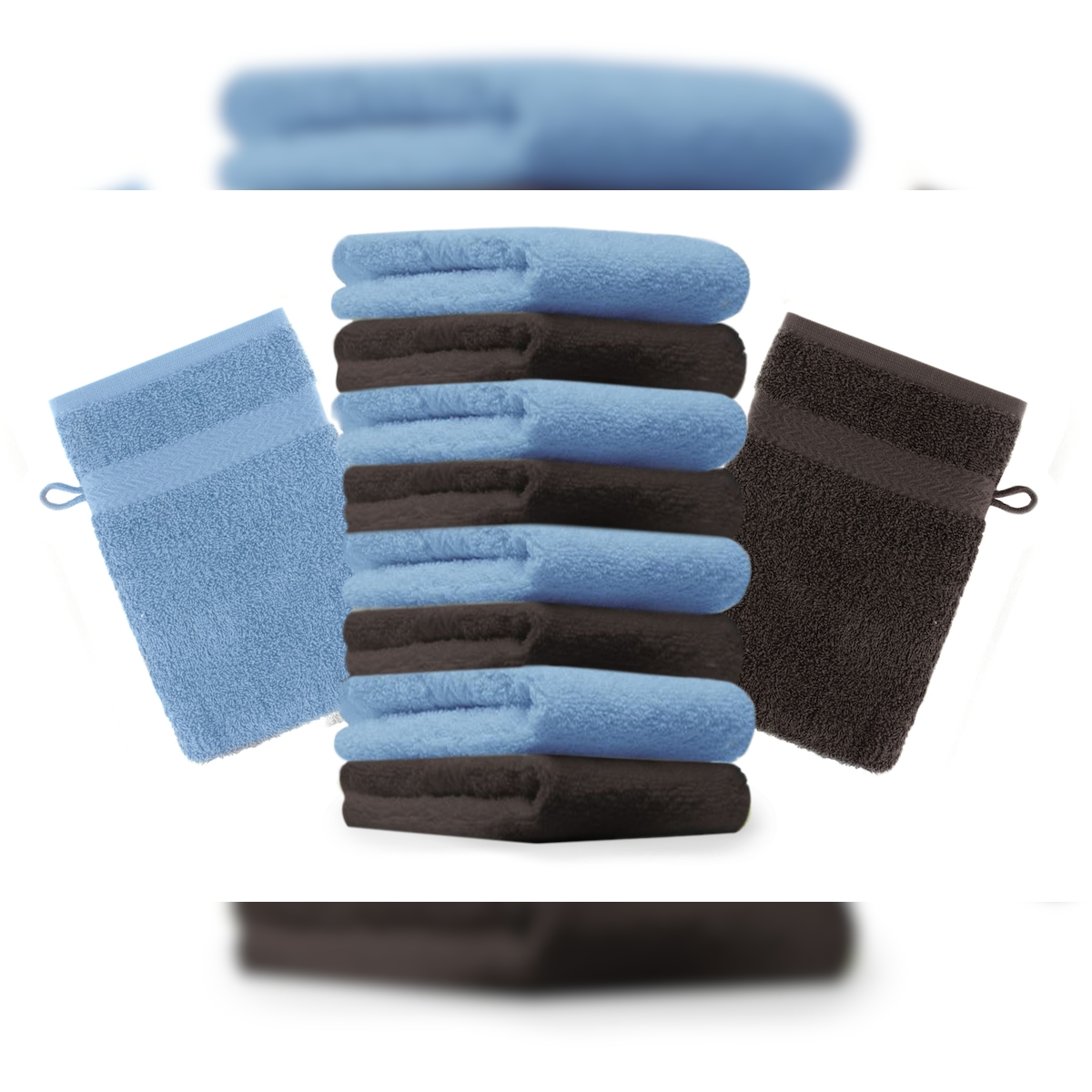 Betz 10 Stück Waschhandschuhe PREMIUM 100% Baumwolle Waschlappen Set 16x21 cm Farbe hellblau und dunkelbraun