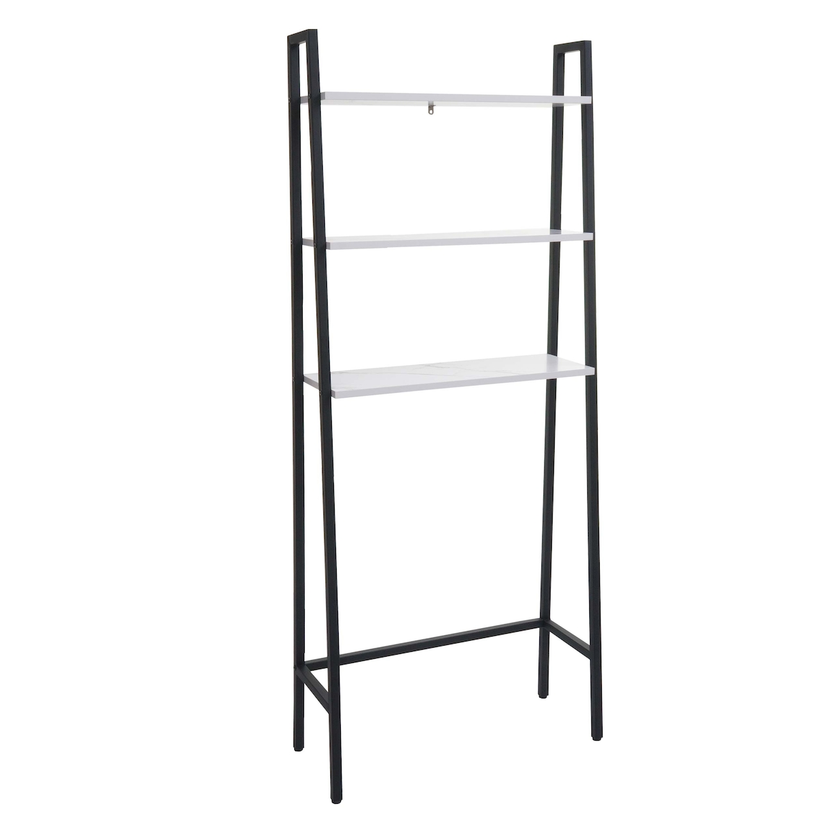 Mendler Standregal HWC-K82, Badregal Waschmaschinen-Regal Leiterregal, Industrial Metall Holz 155x64x25cm ~ Marmor-Optik weiß