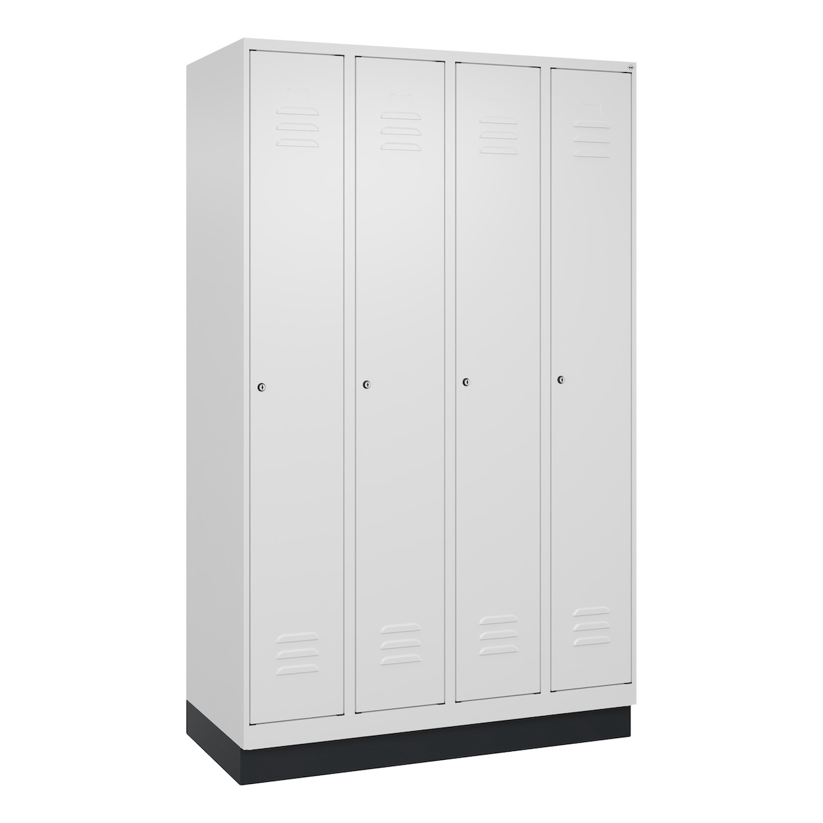 C+P Spind Classic PLUS, Sockel, 4 Abteile, HxBxT 195x120x50cm, Zylinderschloss, Verkehrsweiß von PROREGAL
