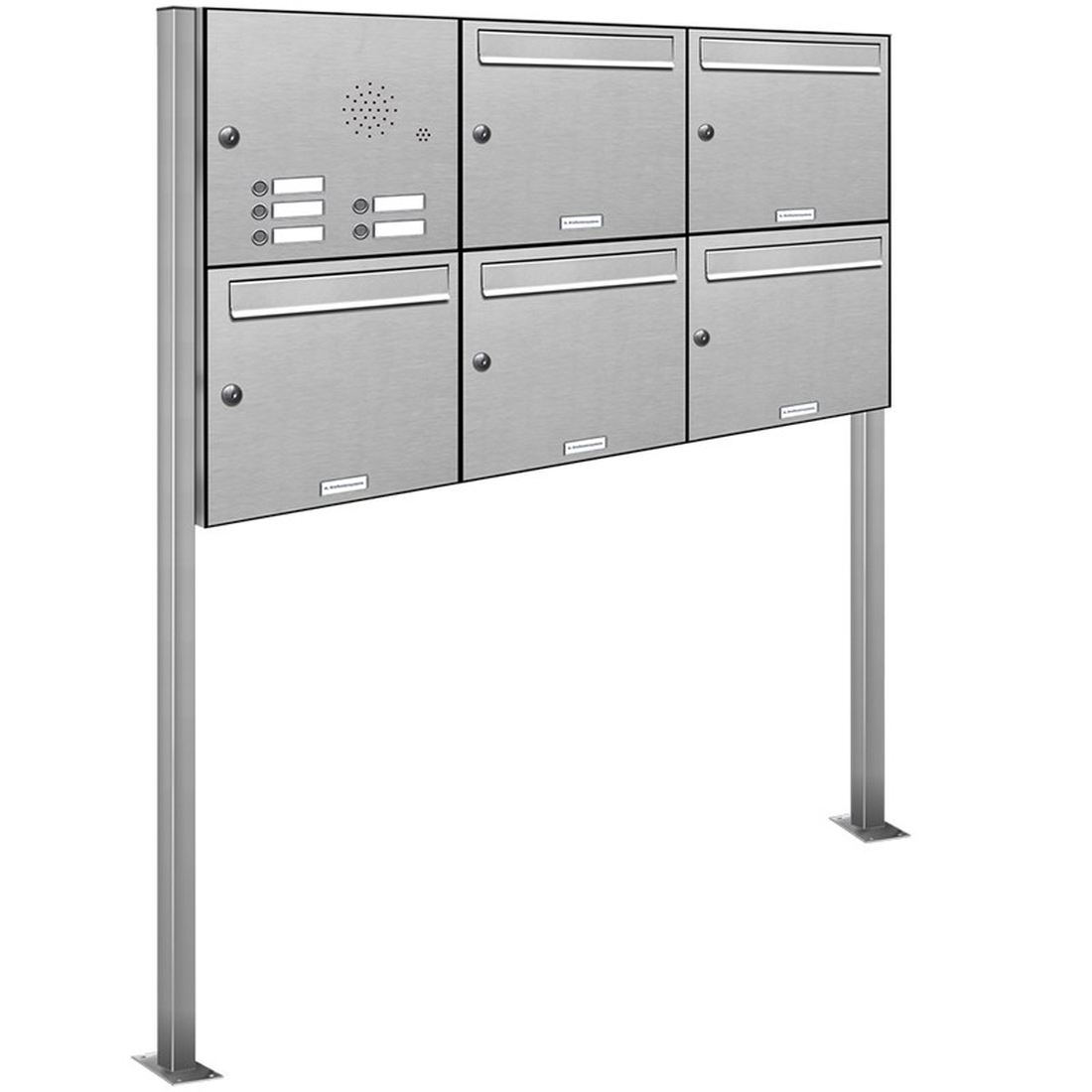 AL Briefkastensysteme 5 Fächer Premium Edelstahl Stand Briefkasten Anlage mit Klingeln, Post A4 modern, robust, wetterfest, Artikelnummer: 331V5S3KS