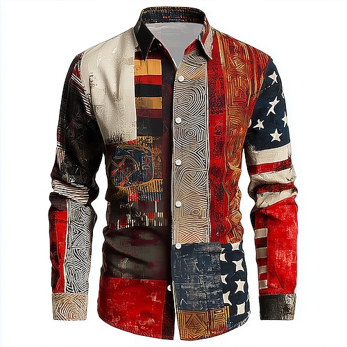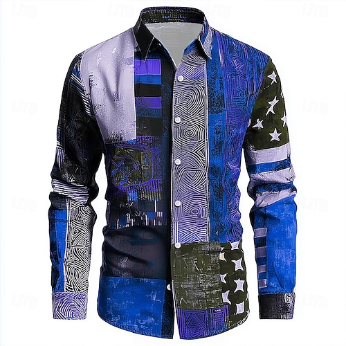 Per uomo Geometrico Blocco di colori Patchwork Camicia Camicia con Bottoni Manica Lunga Vintage Retrò All'aperto Quotidiano Abbigliamento casual alla moda Primavera Autunno Collo ripiegato Stampa 3D