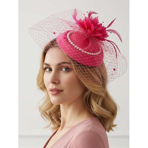 cappello fascinator da donna in poliestere con rete e piume, elegante e alla moda, disponibile in più colori, perfetto per matrimoni e occasioni speciali