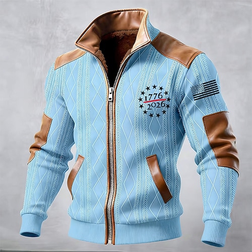 Per uomo Cappotto Invernale Giacca in Pile Giacca Casual Quotidiano All'aperto Calore Termico Jacquard Tasca Autunno Inverno Bandiera Blocco di colori Streetwear Quotidiano Collo alla coreana Regolare