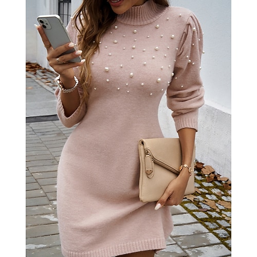 Per donna Mini Abito Abito in maglia Moderno Vacanza Ferie Uscire Vestibilità regolare Semplice Manica Lunga Dolcevita Bianco Rosa Verde militare Autunno Inverno