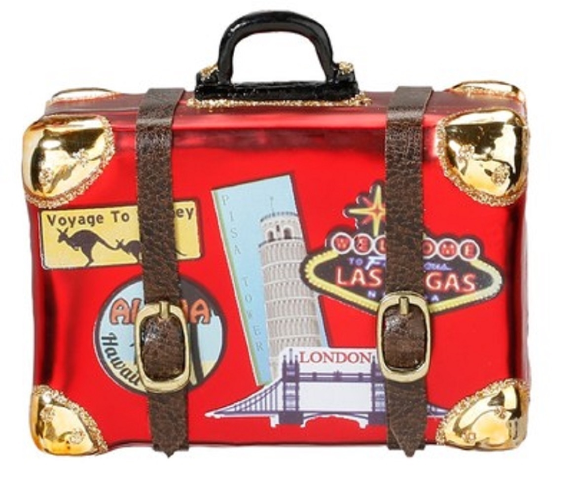 Inges Glas Christbaumschmuck Koffer Weltreise Glas 8,5 cm bunt