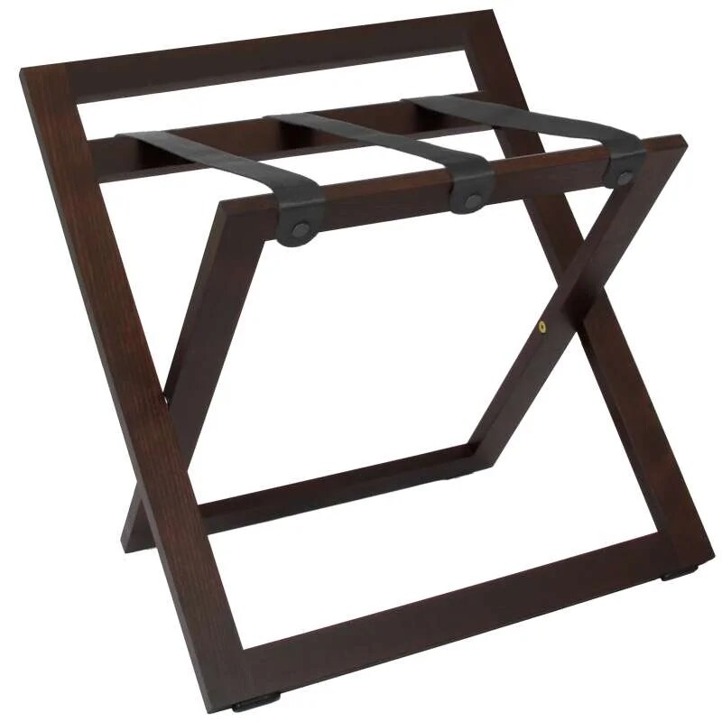 Kofferständer WOOD aus Holz mit Rückwand Nussbaum Braun mit Riemen Nylon Schwarz