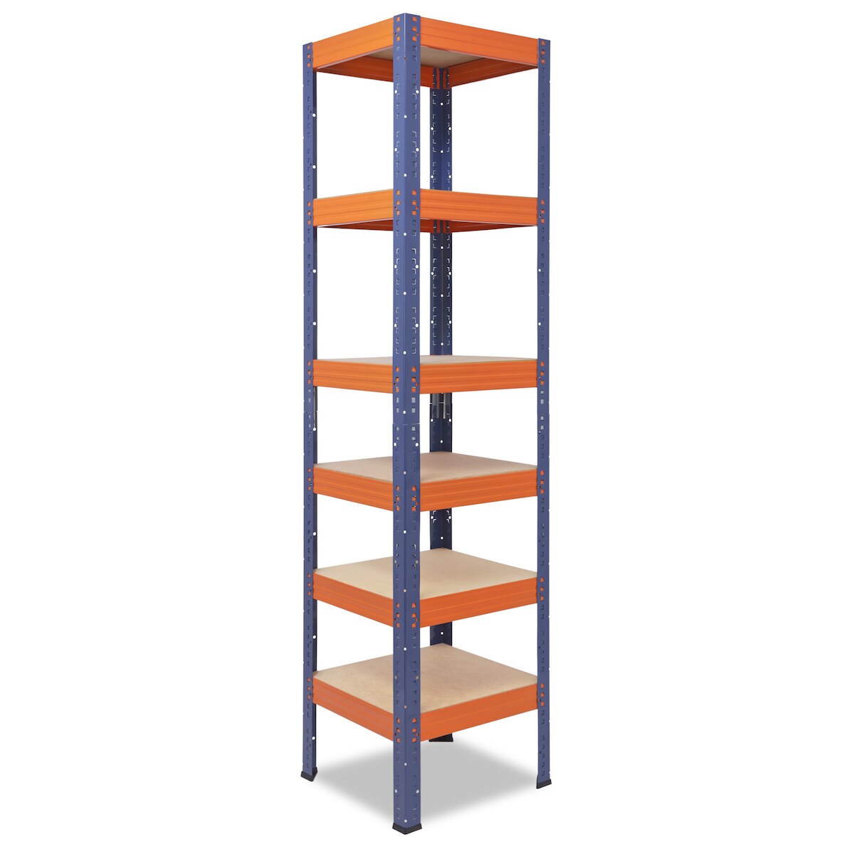 shelfplaza PRO 180x50x50 cm Schwerlastregal in blau-orange mit 6 Böden und 166 kg Traglast pro Boden