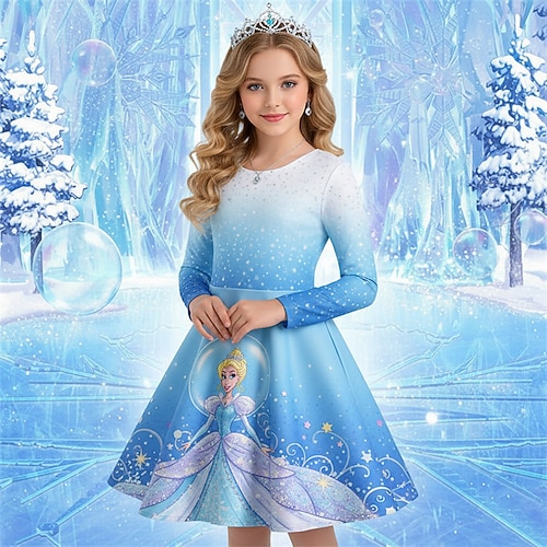 ragazze' 3D Grafico Anime Abito Manica Lunga Stampa 3D Primavera Autunno Performance Vacanza Feste Casual Principessa Bello Bambini 4-12 Anni Vestito Casual Abito a trapezio Lunghezza al ginocchio