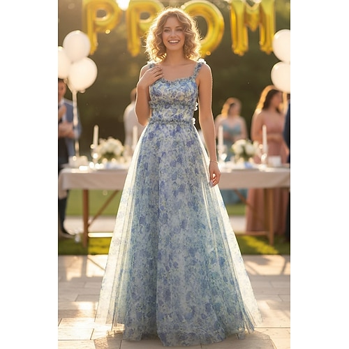 Linea ad A Lunghezza al pavimento Abiti da Ballo Festa Floreale Senza Maniche Spalline sottili Balli di fine anno Formale Gessato con Stampa floreale