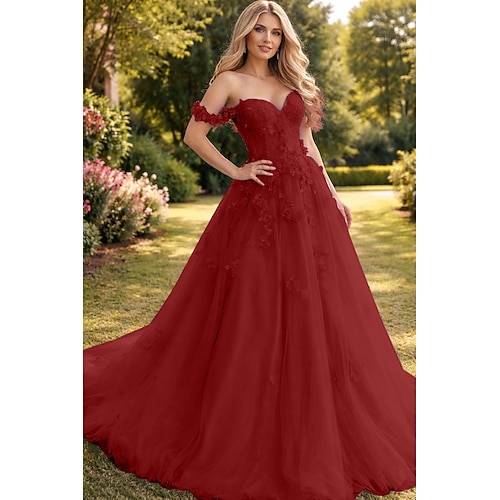 Linea ad A Strascico a Terra Abiti da Ballo Elegante Senza Maniche Scollo a Cuore Formale Tulle con Pieghe Paillettes Applicazioni