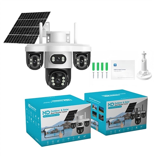 Telecamera di sorveglianza 8k alimentata ad energia solare, tripla lente Full HD, visione notturna a colori, rilevamento umano, audio bidirezionale, grado di impermeabilità IP66