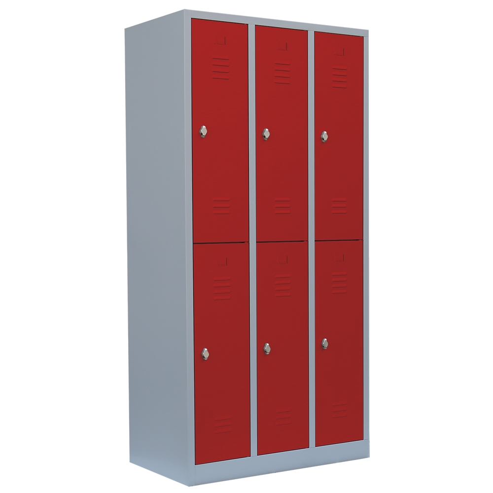 Lüllmann® Garderobenschrank, 3 Abteile doppelstöckig, H 1800 x B 885 x T 500 mm, lichtgrau/feuerrot