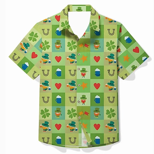 festa di san patrizio quadrifoglio camicia casual da uomo abbigliamento quotidiano per uscire il fine settimana estate couverture maniche corte bianco, verde scuro, verde s, m, l camicia in tessuto