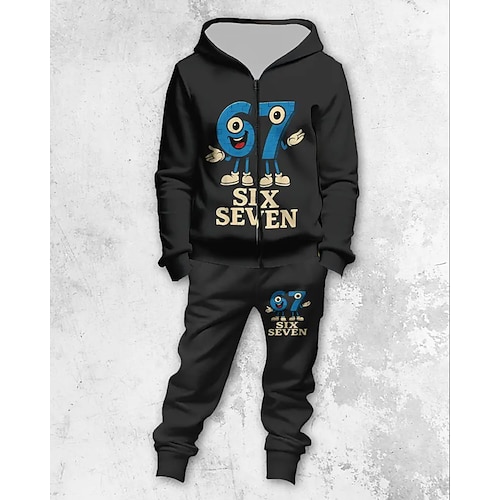 Unisex Ragazzi 3D Grafico Gergo divertente 67 Set Felpa con cappuccio Pantaloni della tuta Tuta sportiva Giacca e Pantaloni Manica Lunga Primavera Autunno Moda Casual Comfort Bambini 4-12 Anni Con
