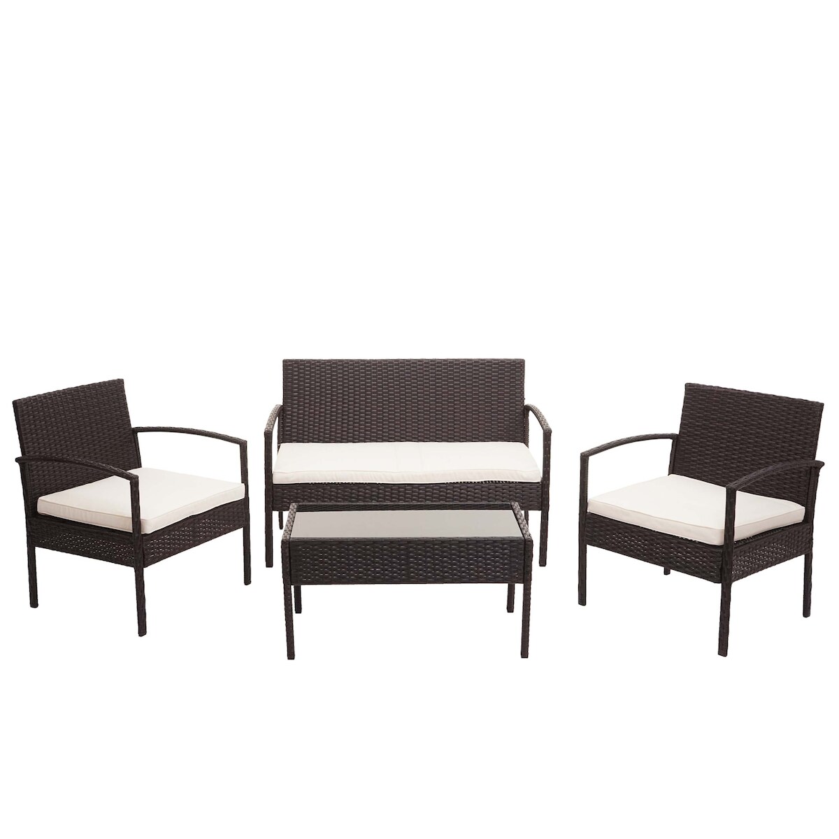 Mendler Poly-Rattan Garnitur HWC-F56, Balkon-/Garten-/Lounge-Set Sitzgruppe ~ braun, Kissen creme