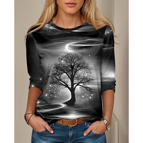Per donna Maglietta Grafico Sfumatura Vintage Elegante Classico Manica Lunga Girocollo Top Regolari Quotidiano Stampato Blu Viola Verde Grigio Primavera Autunno Inverno