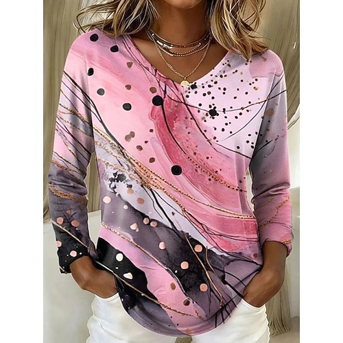 Per donna Maglietta Grafico Astratto Vintage Moda Elegante Manica Lunga Scollo a V Top Regolari Quotidiano Stampato Rosa Primavera Autunno